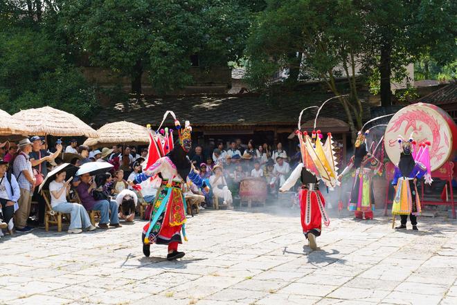 演员手中紧握着木制短兵,伴随着鼓点,以粗犷且充满力量的唱腔,生动地演绎着《三国演义》中三英战吕布的精彩故事。这并非普通的戏剧表演,而是被誉为“中国戏剧活化石”的屯堡地戏,它宛如一部鲜活的军事史诗,历经六百年岁月的洗礼,依旧在这片土地上激昂奏响。