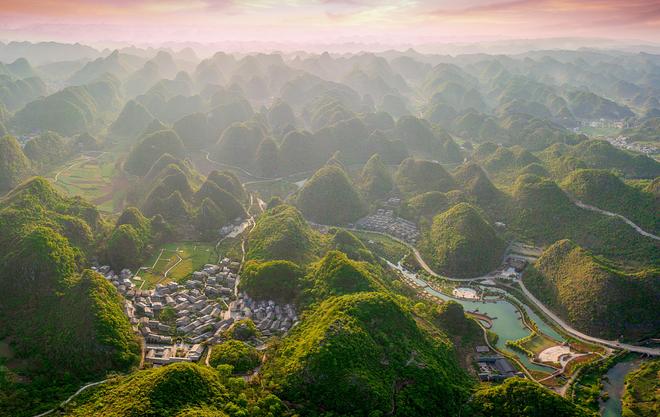 位于镇宁自治县的高荡村,四面环山,从高处俯瞰,整个村子犹如群峰之上托着一口巨大的锅,布依语因其独特的地形而称之为“翁座”。